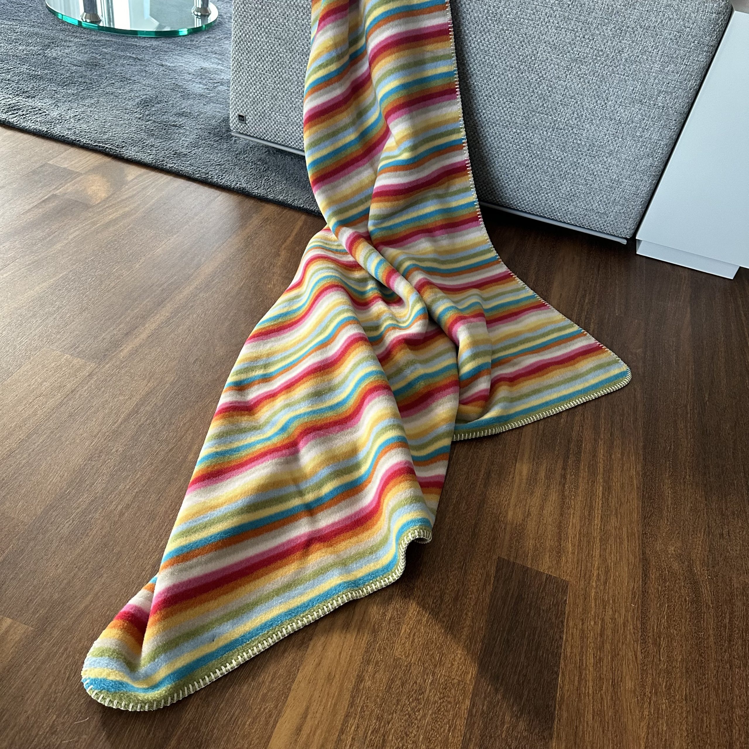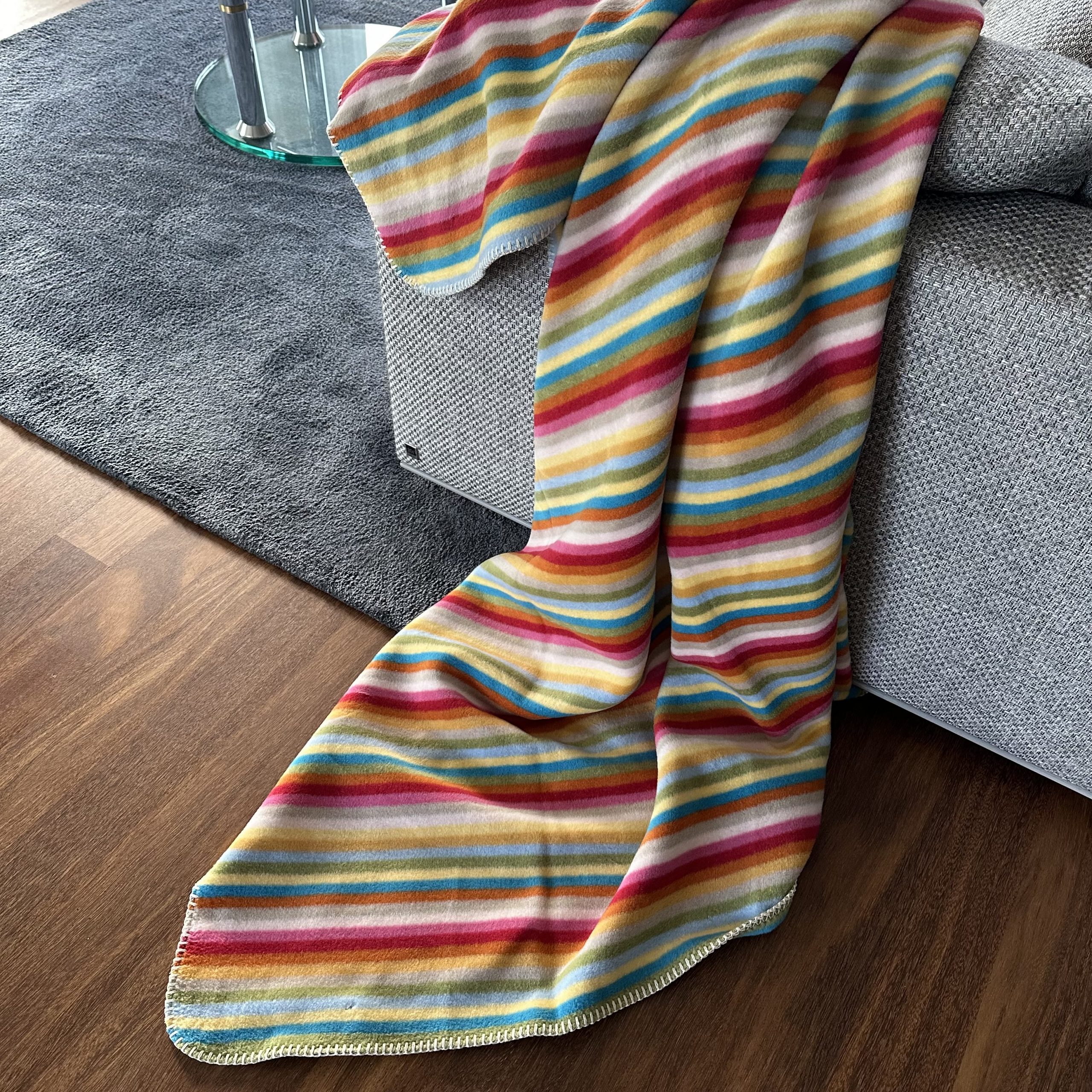 eine farbenfrohe Wohndecke, die nicht nur gute Laune macht sondern auch schön kuschelig ist